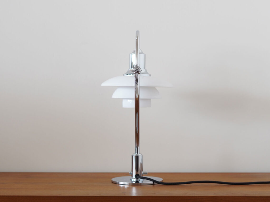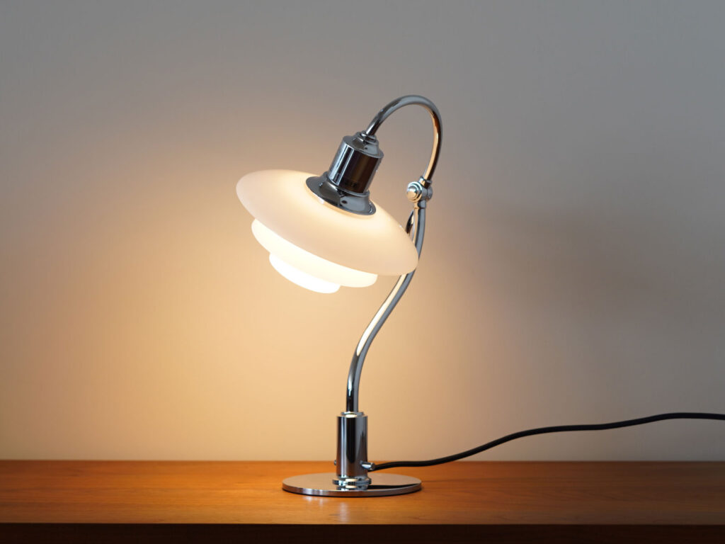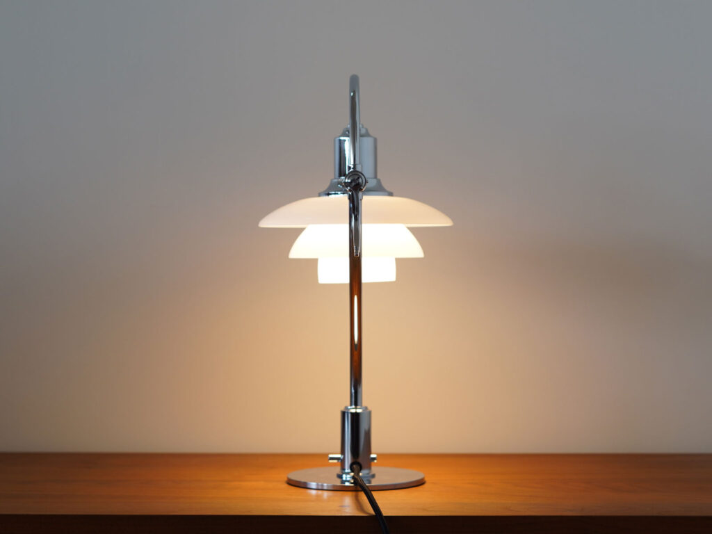1931年にポール・ヘニングセンがデザインしたこの テーブルランプは、3枚シェードのPHランプシステムに基づいており、目に心地のよいやわらかな光を発します。