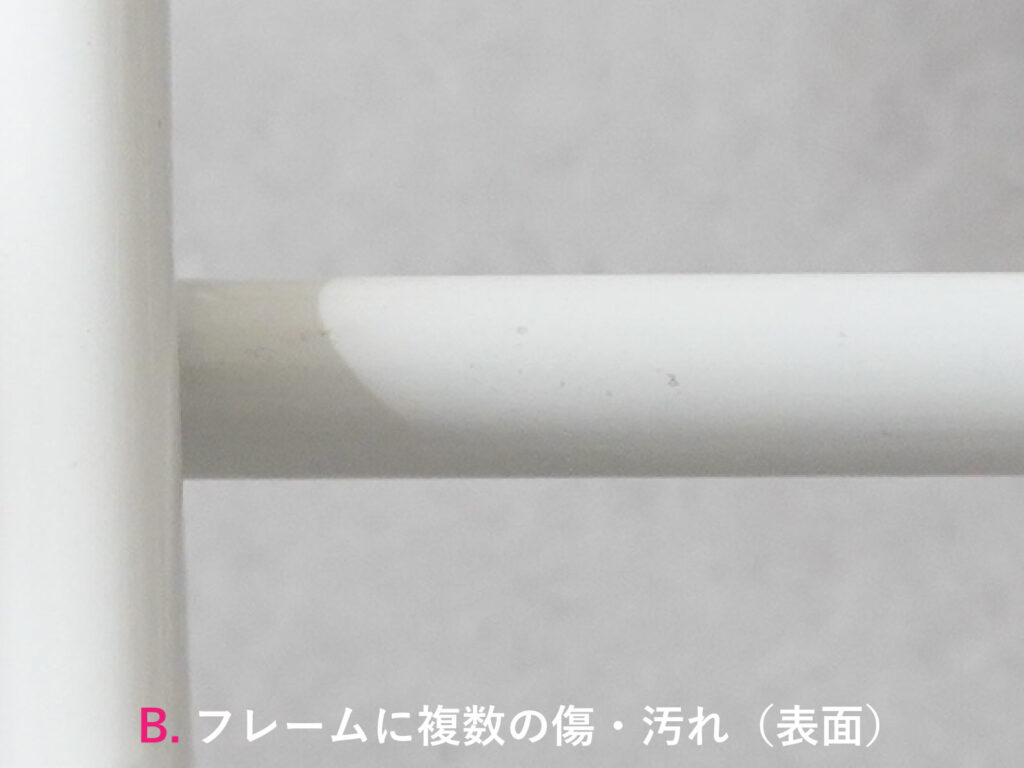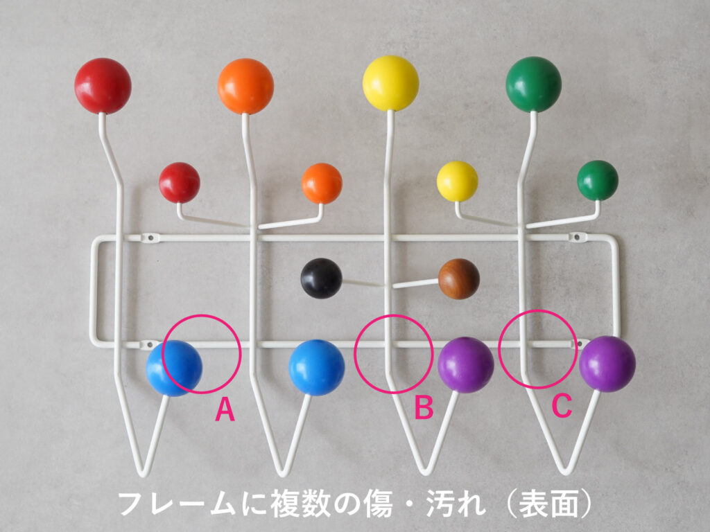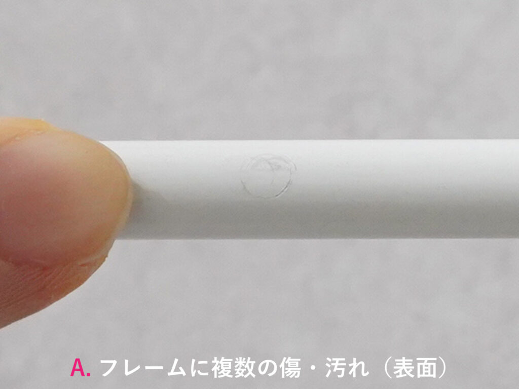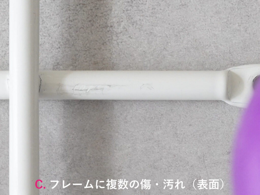 フレームに傷や汚れが複数見受けられます。主だったものは画像を掲載しておりますのでご確認ください。