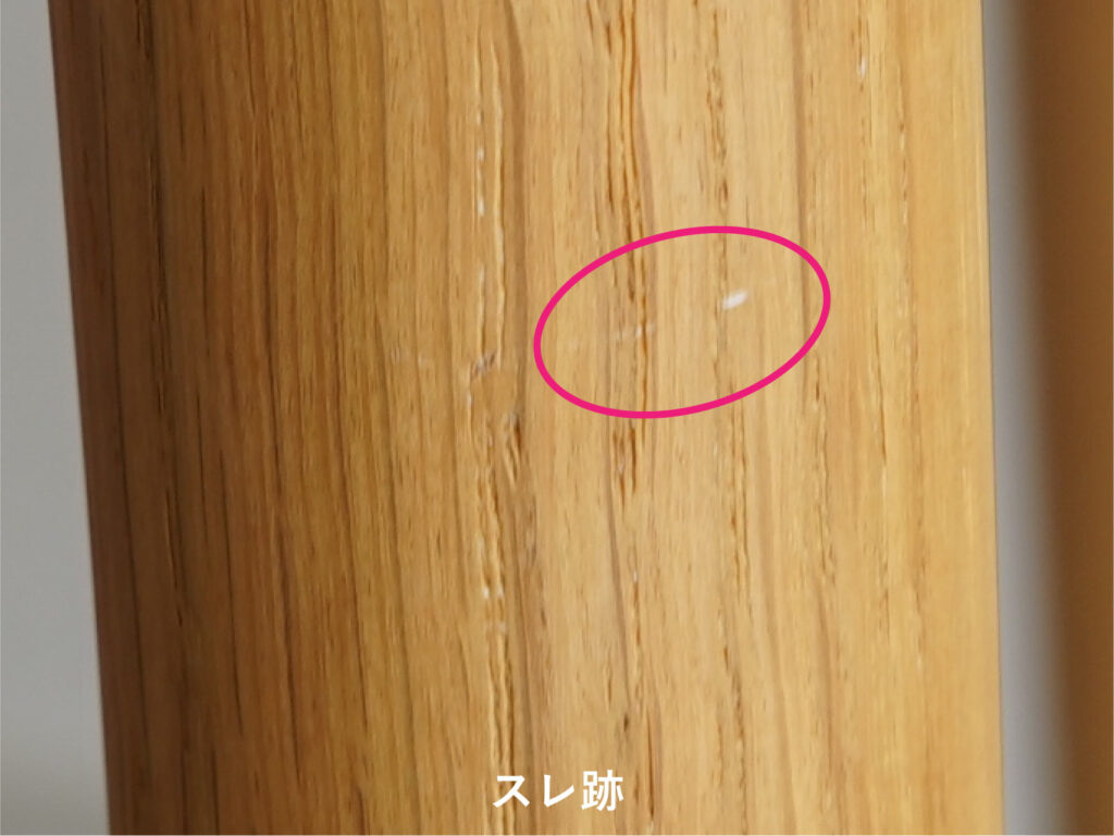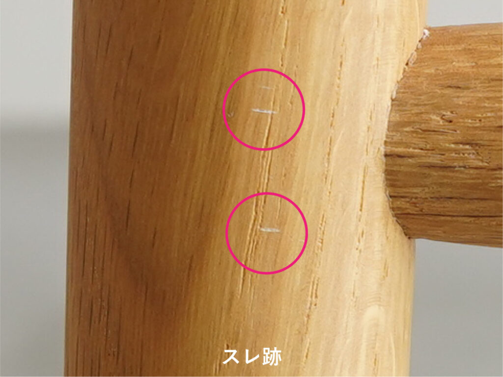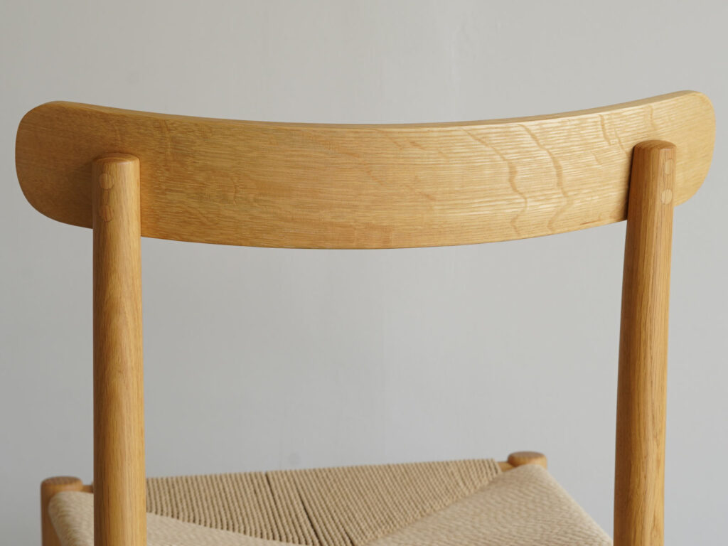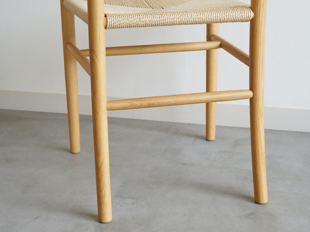 木部にはホワイトオークを使用しており、脚部などに特徴的な美しい虎斑が見て取れます。ホワイトオークは2026年3月に惜しまれつつも廃番となった木材です。