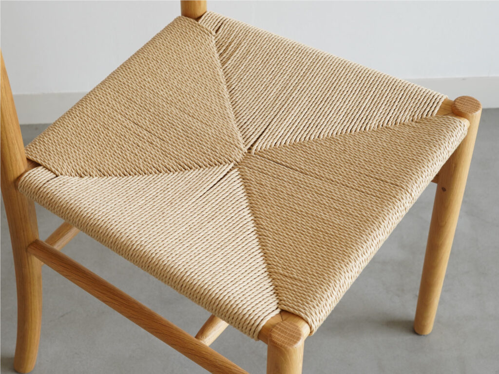 座面には日本製のペーパーコードを使用。適度なテンションと通気性があり、ソフトな座り心地で身体にフィットします。